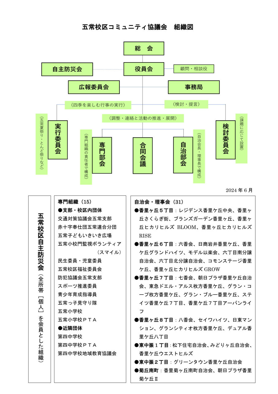 本会は、五常校区内の自治組織と専門組織(以下構成員という)を